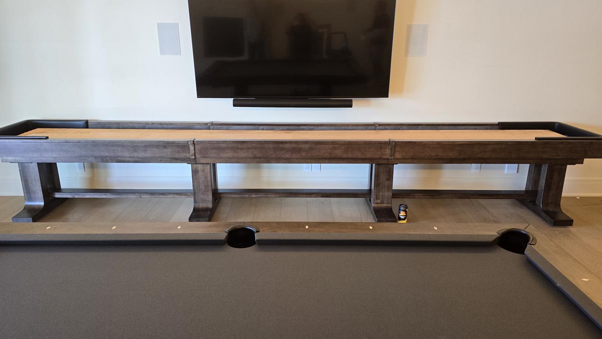 The Atherton Shuffleboard Table is one of the finest shuffleboard tables made today, with an original design that combines modern lines and a traditional silhouette to compliment virtually any room. Available in 9', 12', 14', 16', and 18' sizes to fit your room.