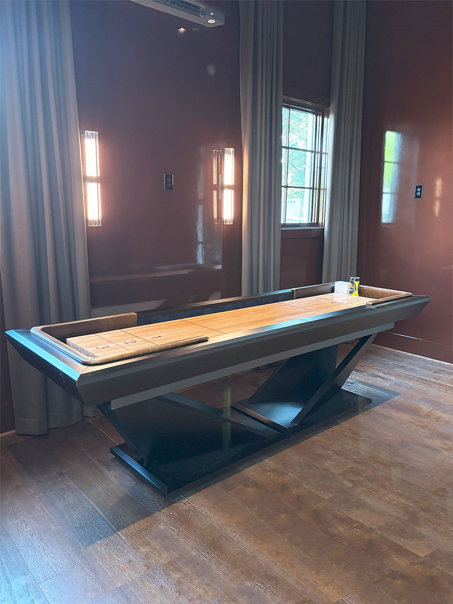 11. Finally, California House offers stylish, original designs that are on-trend yet feature timeless qualities. All Cal House shuffleboard tables are available in your choice of finish color, alley and collar upholstery, and are offered in a wide range of sizes. All Cal House products are made in the USA.